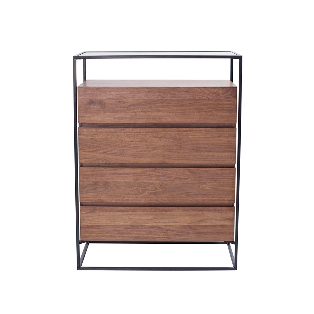 CB-273-胡桃木主體+黑亞光金工件+透明鋼化玻璃
