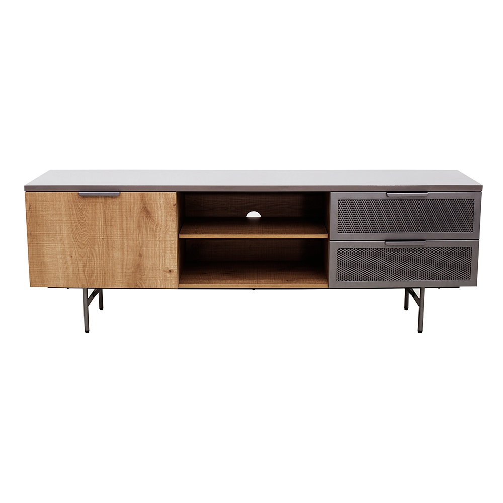 CB-230 石色亮光面板+橫紋橡木主體、柜門+金屬灰色金工件