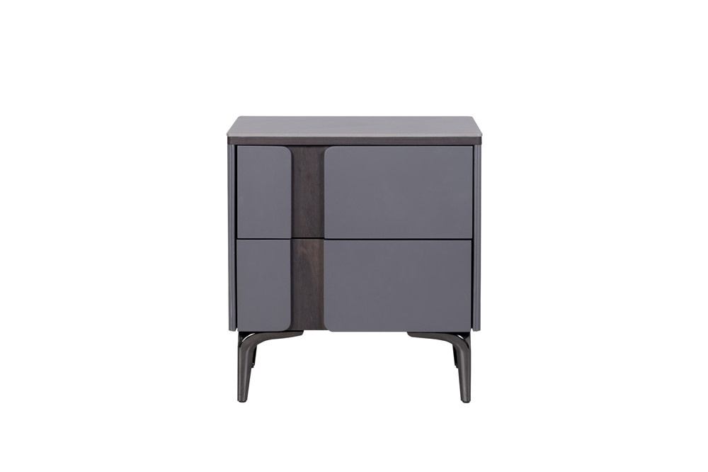 特洛伊灰?guī)r板面板+灰色啞光主體+煙熏色木紋裝飾條+槍色金工腳