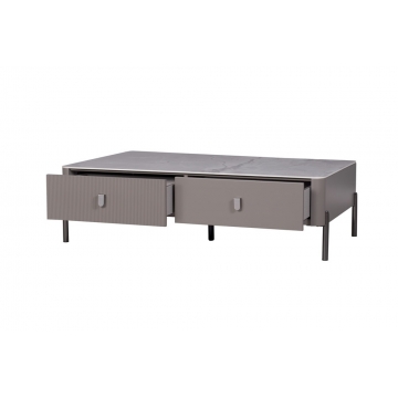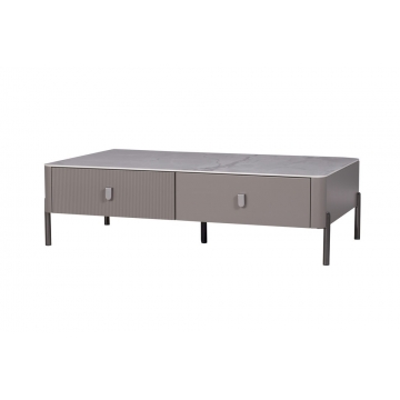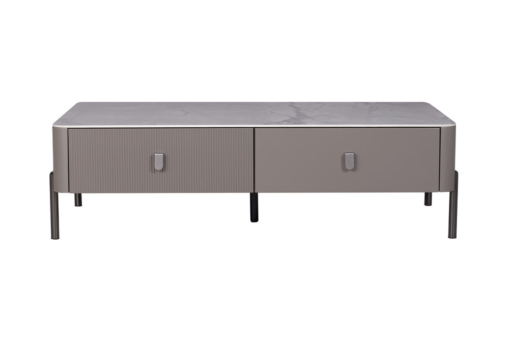 意大利米灰陶瓷面板+石色啞光主體+金屬深灰金工件+灰色拉手+槍色腳