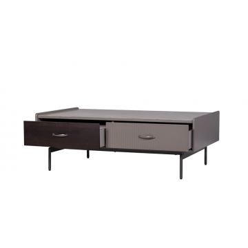 普佩石巖板面板+石色啞光主體+煙熏木皮抽面+金屬深灰色金工件