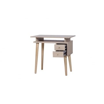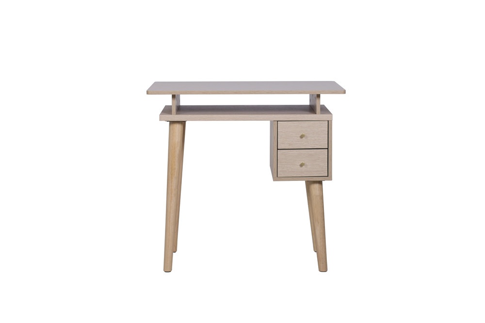 橡木原色三聚氰胺板(PB)+抽盒淺灰布紋三胺板+拉手黃銅色(外購)+橡膠木做清漆腳