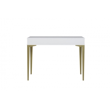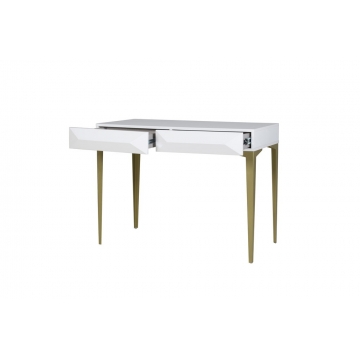 白亮光主體+暖白三聚氰胺板背板中立板底板+淺灰布紋三聚氰胺板抽盒+亮銅色金工件