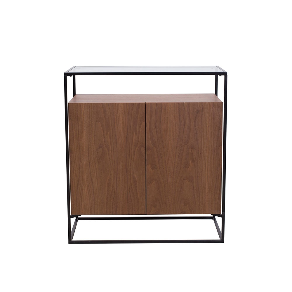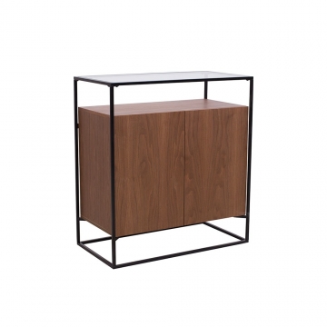 CB-127-胡桃木主體+黑亞光金工件+透明鋼化玻璃